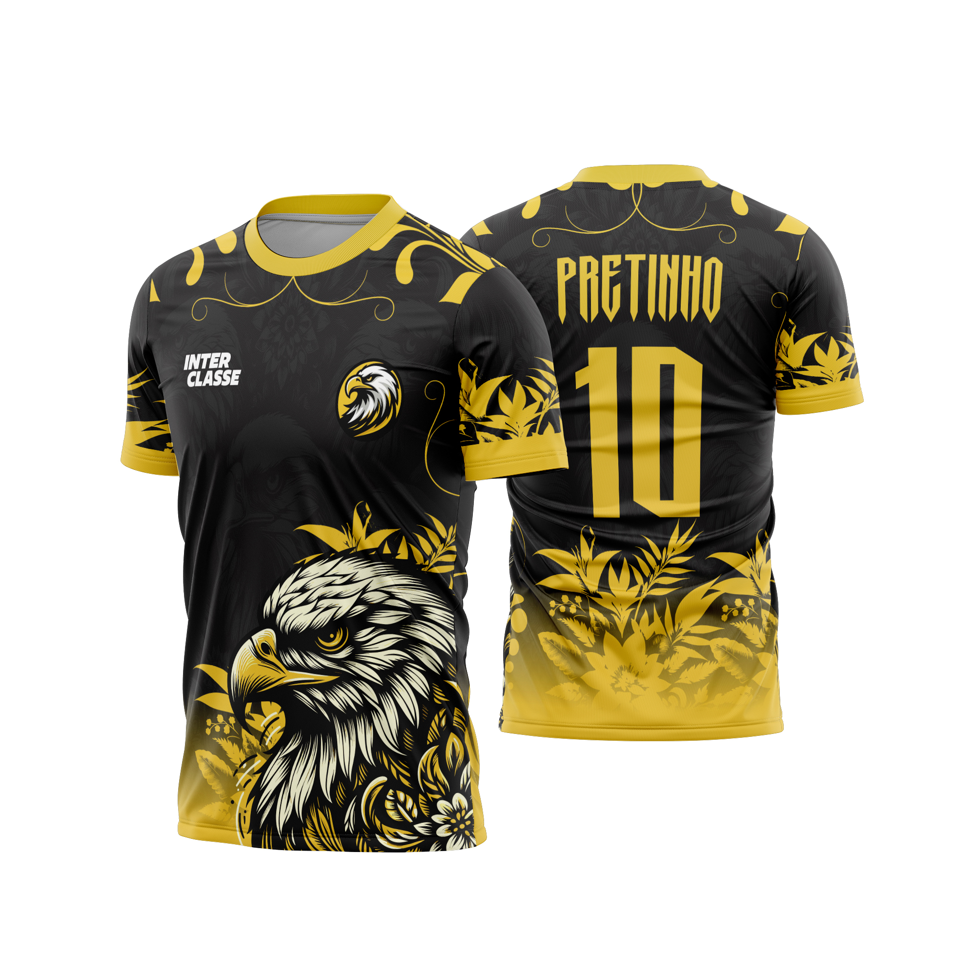 Template Camisa - Águia Floral amarela 26 - Vetor